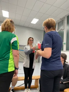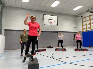 Anlässlich ihres runden Geburtstages, organisierte sie eine gemeinsame Fitnesseinheit für die Gruppen Ü40 Frauen und Männer.