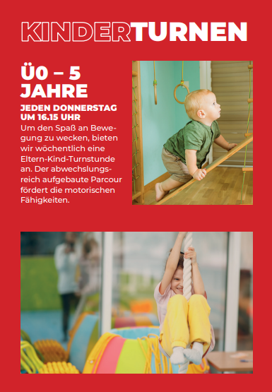 In unserer liebevoll gestalteten Eltern-Kind-Turnstunde entdecken die Kleinsten gemeinsam mit Mama, Papa oder den Großeltern spielerisch die Welt der Bewegung.